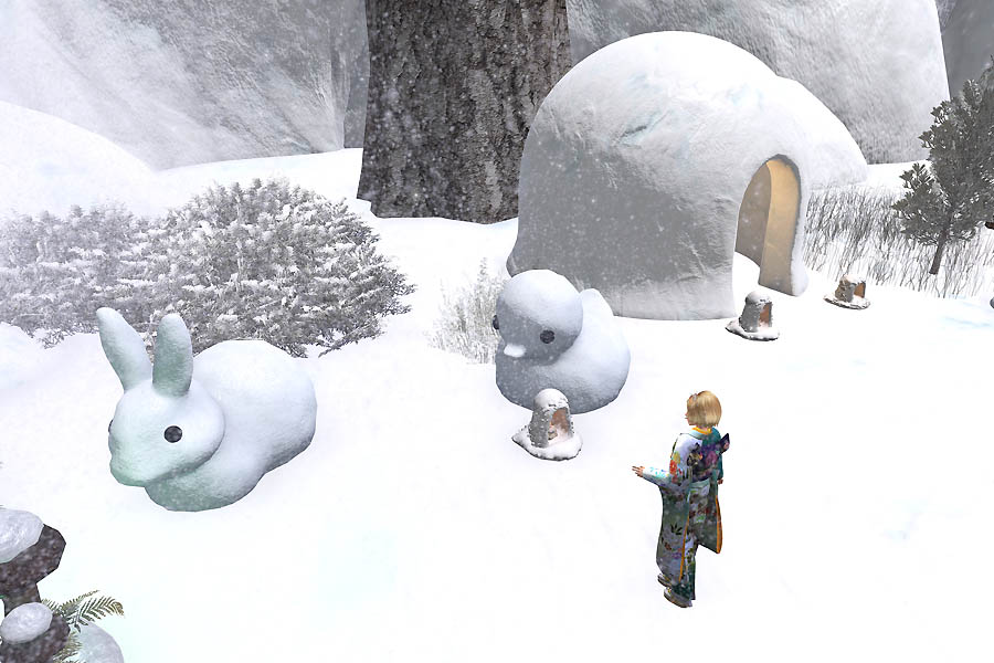 雪うさぎ、雪あひる