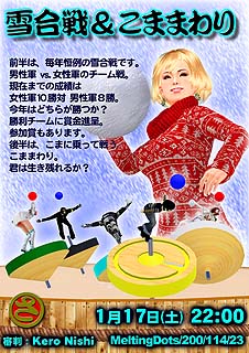 今晩の さぽせんイベントは、第19回雪合戦 と こままわり。