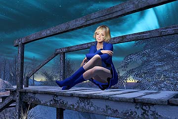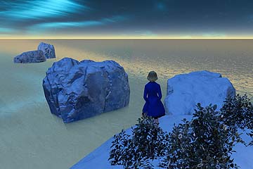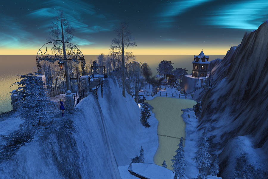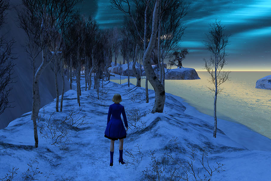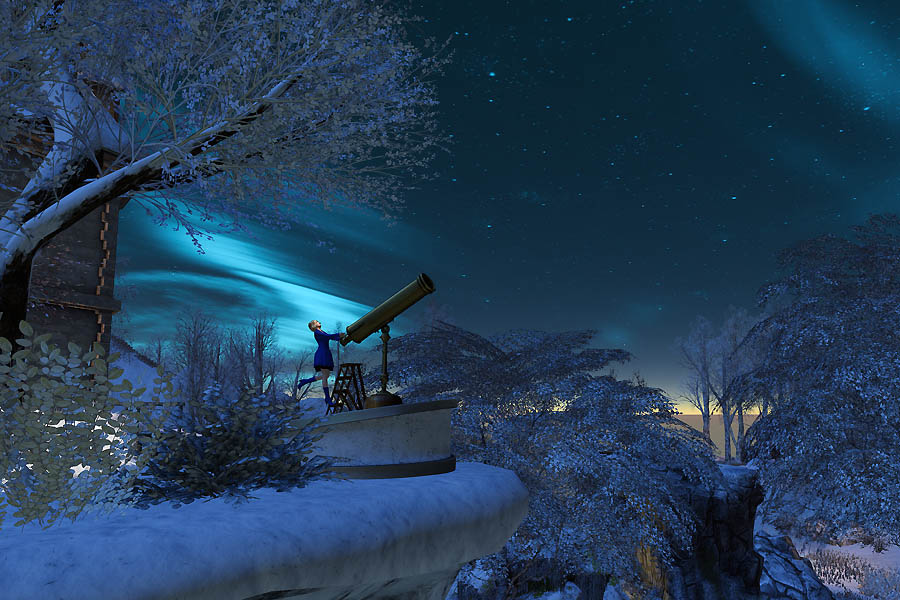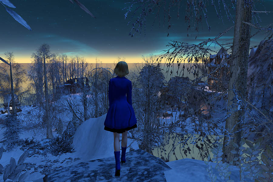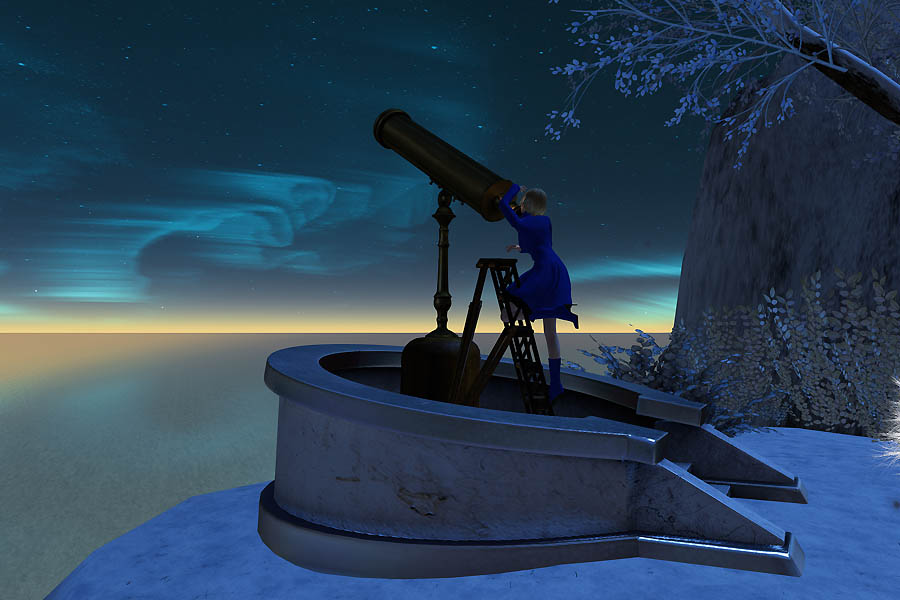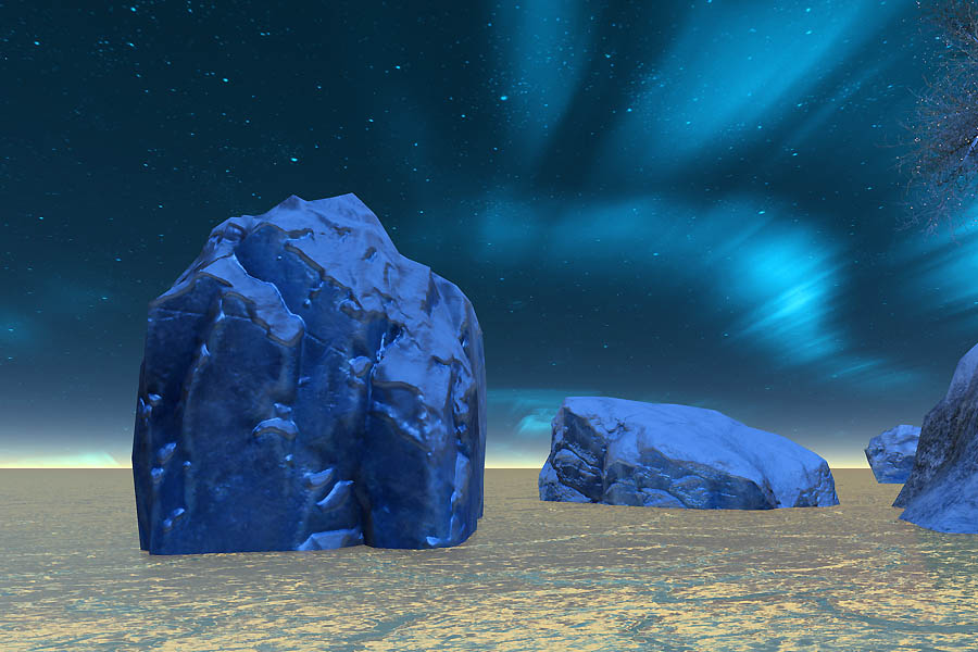 青く光る夜空と