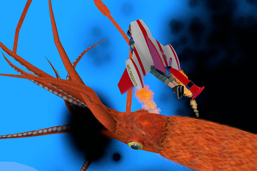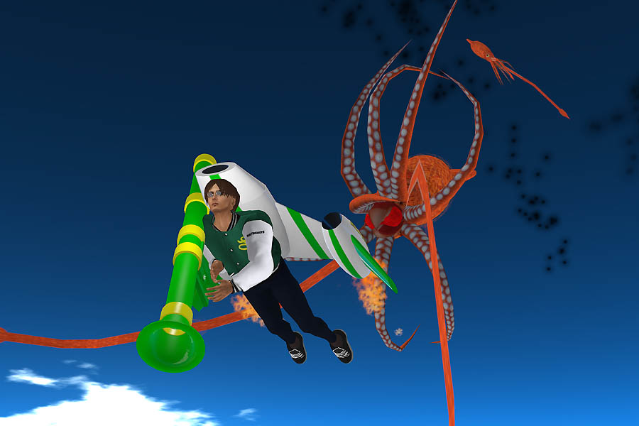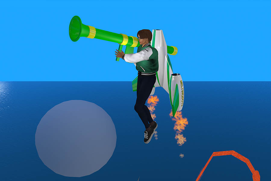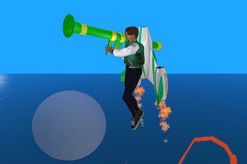 ジェットパックを装着し、