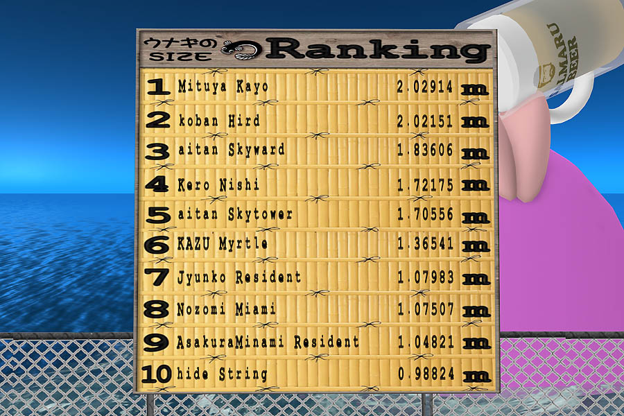 Mituya : やったー!2.029143 m の ウナギ がつれました!おめでとう!!