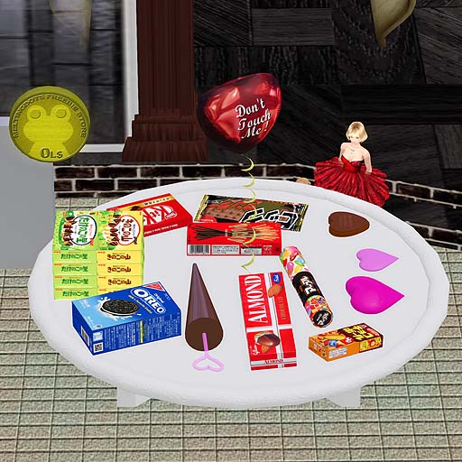 バレンタインデーが近いので、過去のバレンタインギフトをフリービーストア前に置きました。
